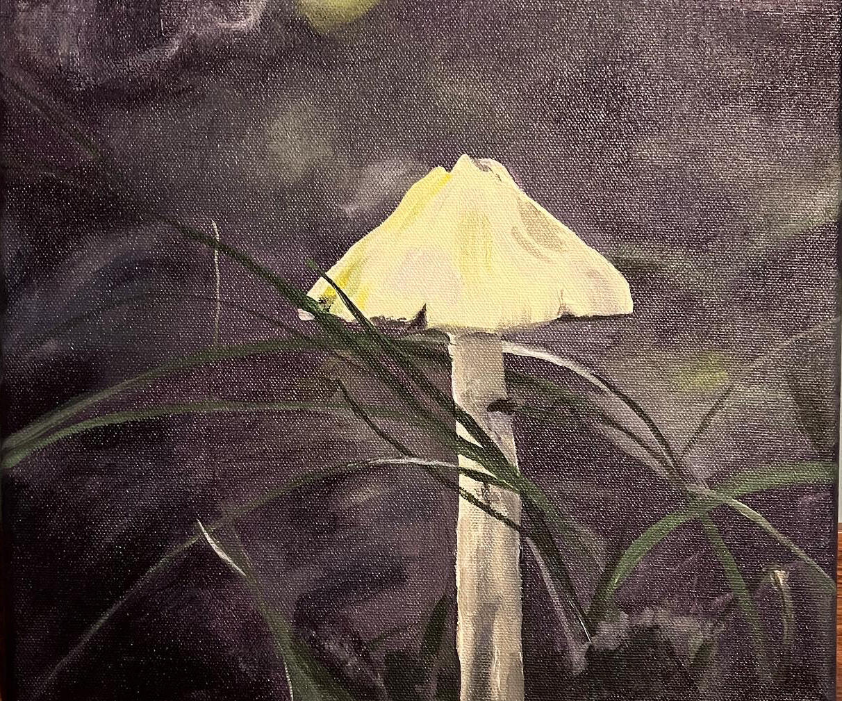 I paint mushrooms. First I find them. Then I take a picture. Then I paint them. I paint other things too, same steps. My style leans witchy. I utilize metallic acrylic paint to capture the magick. Every piece is an original.I live between Northfield and Tilton New Hampshire with my family, a dog, a cat, a rabbit, and a snail.